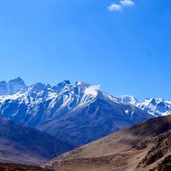 Nach einer weiteren Kurve sind wir ganz überraschend oben und es entfährt mir ein fassungsloses Wow. Da lieg Gisela vor uns - die gesamte Kette Berge des Himalaya. Weiß glitzernd in der Sonne. Der Anblick ist unbeschreiblich.