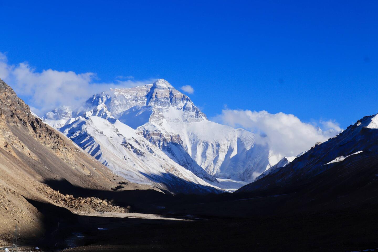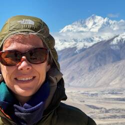 Von tibetischer Seite ist es perfekt zu sehen. Was für ein beeindruckender Moment. Erhaben, majestätisch thront er über allem, der Qomolangma. Die Luft ist heute besonders dünn und wir kommen wieder kräftig ins Schnaufen. Der Sauerstoff fehlt in den Lungen und presst sie zusammen. Ich empfinde es als angenehmer, langsam und stetig weiter zu laufen, als stehen zu bleiben. Sobald ich stehe, habe ich das Gefühl, zu wenig Luft zu bekommen und weiß vor lauter Atmen nicht, wie ich noch atmen soll.
