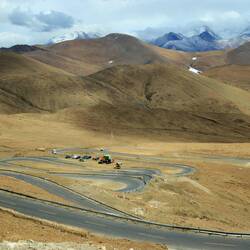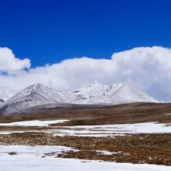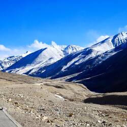 Die Luft ist kalt und klar. Wir spüren sehr deutlich, dass sie dünner geworden ist und wir weniger Sauerstoff als in Lhasa zur Verfügung haben. Die wenigen Schritte, die wir hier oben machen, um gerade mal die nächste Position für ein noch schöneres Foto zu erreichen, machen uns mal wieder deutlich, dass wir uns in einer Extremsituation befinden. Dabei haben wir uns in Lhasa so gut an die Höhe gewöhnt. Also langsam. Wir kennen das ja schon. Nach jeder geringfügigen Belastung erhöht sich der Puls schlagartig und das gierige Atmen reicht nicht aus, um dem Blut genügend Sauerstoff zuzuführen. Die Chinesen haben alle eine kleine Umhängetasche dabei, in der sich eine Sauerstoffflasche befindet und den kleinen Schlauch in der Nase. Das ist zwar Luxus, aber ich finde, wenn man schon in solche Höhen reist, dann sollte man sie auch ein wenig spüren. Nicht als Höhenkranke, aber als Grenzerfahrung für den Körper. Wir genießen die spektakuläre Aussicht auf den See, spüren die Weite und andererseits die Größe und Kraft der Berge. Wir entdecken die weich erscheinenden Mooskissen, die steinhart sind und die wir aus den Anden bereits kennen. Noch sind sie nicht grün. Aber der Frühling beginnt auch eben erst. Nach einiger Zeit reißen wir uns von diesem Anblick los und fahren weiter zum Karo-La Pass.Read more