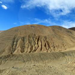 Nach diesem wundervollen Tag erreichen wir nach einer weiteren Stunde Fahrt unser Tagesziel Shigatse. Die Sonne taucht die Berge in wunderschönes, weiches Licht. Der Der sandige Boden ist von den monsunsartigen Regenfällen im Sommer stark ausgewaschen. Es ergeben sich tolle Farbspiele aus Licht und Schatten. Die Riesen wirken weichen und sanft. Das erinnert mich an die Anden und dennoch ist die Landschaft völlig anders. Dort gibt es keinerlei Vegetation, während hier auf 4000m Kirschbäume blühen, Gemüse angebaut wird und überall Bäume wachsen. Einige Berg wirken, als ob man Gegenstände mit einem Leintuch zugedeckt hätte und dieses nun alles in fließenden, wallenden Formen umschließt.