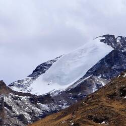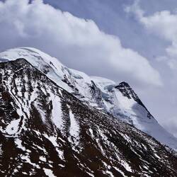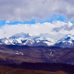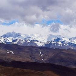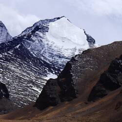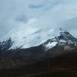 Der Himalaya hat uns wieder und wir betrachten seine weißen Riesen ebenso fasziniert und ehrfürchtig wie beim ersten Mal von Nepal aus. Das Dach der Welt. Weiter geht es zum Gyarso La Pass. Er ist mit einer Höhe von 5.260 m der höchste Pumkt auf der chinesisch-nepalesischen Freundschaftsstraße. Er markiert den offiziellen Eingang zum Qomolangma National Nature Reserve (Everest Region). Obwohl es recht wolkig ist haben wir spektakuläre Ausblicke auf die Bergwelt. Wir bemerken hier bereits die eisigen Temperaturen und Winde. Ist das kalt. Wir spüren sie sofort , als wir die Autotüre öffnen. Es ist kaum auszuhalten.