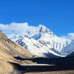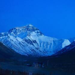 Zum zweiten Mal betrachten wir ehrfürchtig den Mount Everest. Besser gesagt, seine Spitze, die kurz aus den Wolken blitzt. Vor 2 Jahren haben wir den Sagarmatha von oben in Nepal gesehen, als wir die Himalaya-Bergkette entlang geflogen sind. Jetzt stehen wir im Base-Camp des Qomolangma in Tibet und sehen hinauf zum höchsten Gipfel der Welt. Ein Ort - drei Namen. Was für klangvolle, magische, geheimnisvoll klingende Namen sind doch Sagarmatha und Qomolangma. Sagarmatha bedeutet so viel wie „Göttin des Himmels“ bei den Nepalesen. Qomolangma bedeutet für die Tibeter „Göttin - Mutter der Welt“. Mount Everest ist der internationale Name zu Ehren des britischen Landvermessers Sir Georg Everest. Wie banal er doch klingt.