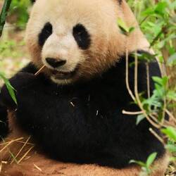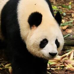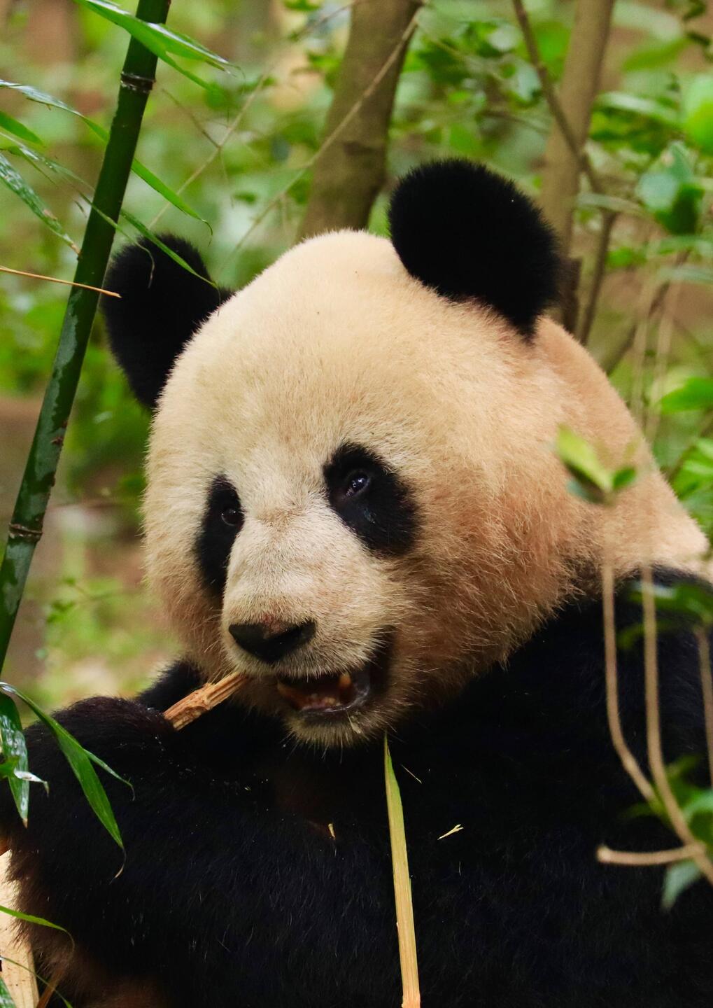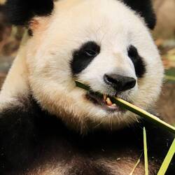Pandas verbringen täglich 10 bis 16 Stunden mit Fressen, denn sie brauchen pro Tag 20-30 Kilo Bambus als Nahrung. Dazwischen bewegen sich die Pandas von einem zum nächsten Bambusstrauch oder legen sich in einen Baum.