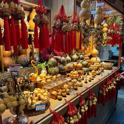 Die Gegend besteht aus drei parallelen Gassen, die uns alle drei begeistern. Dennoch ist es ein kleiner Kulturschock, nach der geruhsamen Zeit in Tibet. Die Menschen hier sind laut, überall dudelt Musik, Verkäufer bieten Tee und Süßes zum Probieren an, es wird gerufen und verkauft und aus dem Transistor dröhnen ebenfalls Verkaufsangebote. Zu diesem Lärm kommen dann noch Menschenmassen hinzu. Irgendwie ist es schrecklich, obwohl wir das aus Beijing und Xi’an schon kennen. Wir sind das nicht mehr gewöhnt und mögen tue ich solche Massen ohnehin nicht. Aber natürlich lassen wir uns treiben und entdecken viele fotogene Ecken mit toller Architektur. Wenn es nur etwas leerer wäre. Neben Schönem gibt es auch „Wunderschönes“. Unglaubliche Kitschläden. Was doch so alles produziert und gekauft wird. Es ist so grauenhaft hässlich, dass es schon wieder ein Foto wert ist.