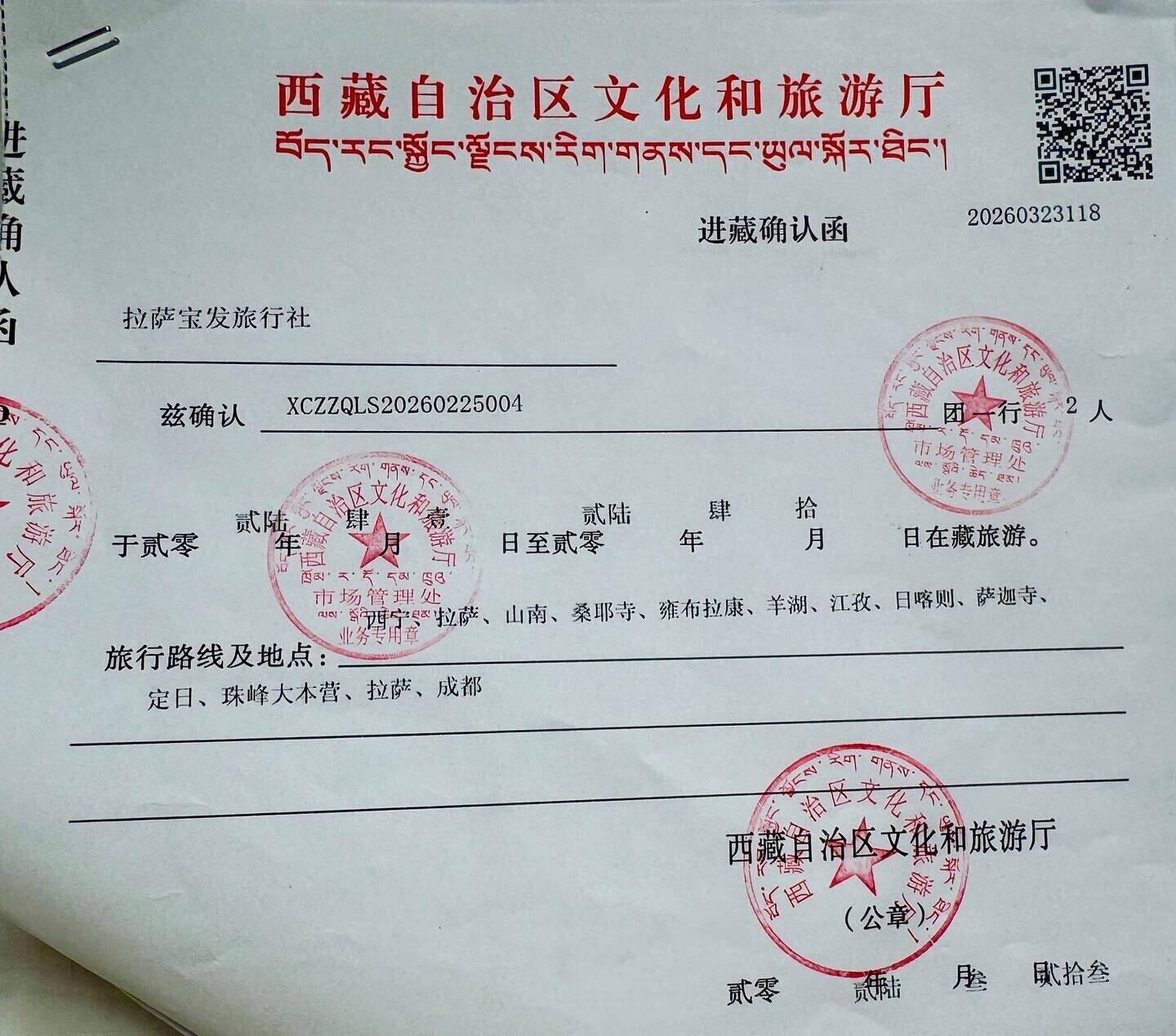 Wir haben unsere Einreisegenehmigung bekommen, bevor wir in den Lhasa Zug gestiegen sind. Dafür kam ein Mitarbeiter der Agentur an den Bahnhof und hat uns das Papier gegeben. Man kann das Permit nicht außerhalb Chinas bekommen. Es ist nicht möglich, es als PDF zu verschicken und es auszudrucken.