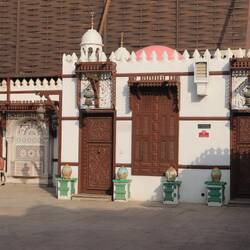 Die Jaffali Moschee steht in dem gleichnamigen Park am Arbaeen-See, der nichts anderes ist, als eine Bucht des Roten Meeres. Sie ist eine sehr schöne Konstruktion mit den vielen kleinen weißen Kuppeln und einem dreistöckigen Minarett.