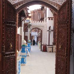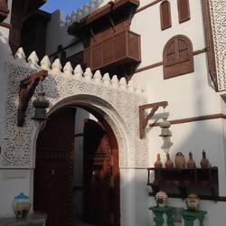 Wir beginnen unsere Erkundungstour am alten nördlichen Stadttor, am Jeddah Old Gate (Bab Jadid). Vor dem Tor erkennt man die Überreste der alten Festung. Die Bauwerke stammen aus der Zeit zwischen 10. und 15. Jahrhundert. Wir bummeln kreuz und quer durch die kleinen Gassen und entdecken wunderschöne Ecken. Ganz besonders schön ist das Nassif House.