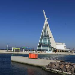 Aber auch bei protzigen Bauwerken möchte man hier Punkten und dem großen Bruder Dubai in nichts nachstehen. Der Leuchtturm ist mit 131m höchste Leuchtturm der Welt. Der höchste Flaggenmast der Welt misst 171m. Die gehisste Flagge hat eine Abmessung von ca. 50m x 33m und wiegt über eine halbe Tonne. Doch heute steht er da wie eine spitze Nadel und ragt in den Himmel. Keine Flagge. Schade.
