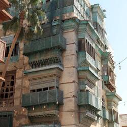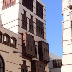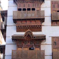 Ein ganz wesentliches Merkmal der Wohnhäuser Jeddahs sind die hölzernen Vorbauten aus Teakholz an den Fassaden, die sogenannten Roshan. Diese balkonartigen Erker dienen in gewisser Hinsicht der Erweiterung des Wohnraumes über die eigentliche Grundfläche des Wohngebäudes hinaus.