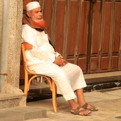 Als es schon dunkel ist, ruft der Imam. Innerhalb kürzester Zeit füllt sich das riesige Areal der Moschee und alle umliegenden Plätze. Die Geschäfte werden dazu schlicht kurz geschlossen. Alle Menschen knien in perfekter Anordnung auf ausgelegten Gebetsteppichen und die gesamte Stadt schweigt und lauscht. Es ist ein fast magischer Moment. Diese Stille und der Imam. Alle stehen synchron auf und knien wieder nieder, als würden sie am Faden eines Marionettenspielers hängen. Ein perfekter Ablauf. Doch wie viele Menschen sind das? Wir tippen auf mehrere 100.000, die alle schweigend lauschen. Hunderttausende verstummen, wenn einer die Stimme erhebt. Und jetzt erkennen wir auch ganz eindeutig: wir beide sind die einzigen Menschen hier, die keine Muslime sind.