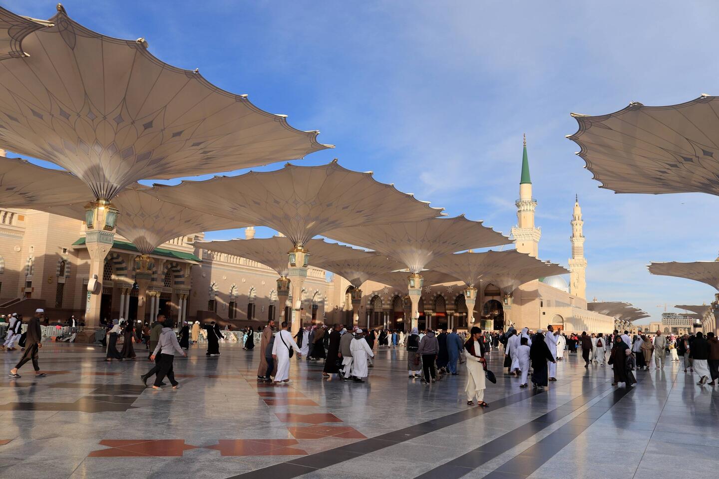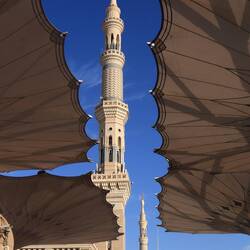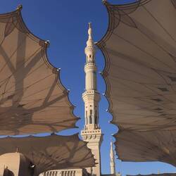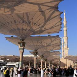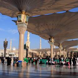 Der heilige Bereich Medinas heißt Al-Haram. Hier steht im Herzen der Stadt die Prophetenmoschee. Sicherlich eines der bekanntesten und eindrucksvollsten Bauwerke des Islam, gleich nach der Al-Haram Moschee rings um die Kaaba in Mekka.