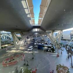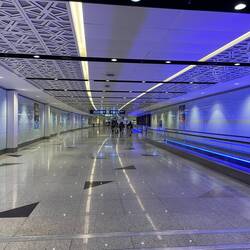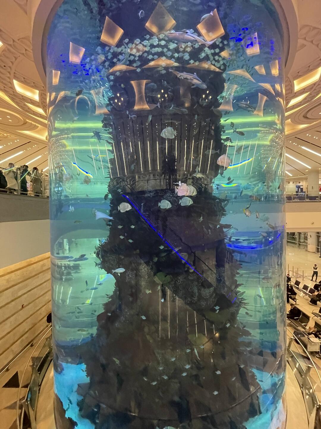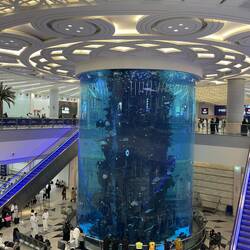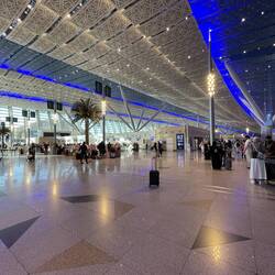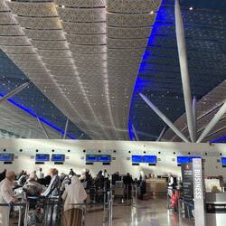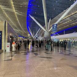 Saudi-Arabien will künftig in der Liga der großen Reisedestinationen mitspielen und Dubai das Wasser reichen. Daher setzt bereits Jeddahs Flughafen Maßstäbe. Jeddah ist von Europa aus der westlichste Flughafen und in knapp 6 Stunden von Frankfurt zu erreichen. Außerdem ist es bis heute das Tor nach Mekka auf der Pilgerreise Hajj. Nur kommen die Pilger nicht mehr wie früher mit dem Schiff, sondern eher mit dem Flugzeug. Um den großen Andrang bewältigen zu können, wurde ein übergroßer, moderner Flughafen im Norden der Stadt errichtet - der King Abdulaziz Airport. Das Hajj Terminal ist die größte zusammenhängend überdachte Fläche der Welt. Das blau weiß gestaltete Dach, das sich über diese riesige Halle in leichtem Bogen spannt, ist grandios. Ein weiteres Highlight ist das überdimensionale Aquarium, in dem sich Haie, Rochen, Moränen und viele andere bunte Fische tummeln. Durch die Form des Aquariums und die geometrischen Formen der Umgebung entstehen tolle Lichtbrechungen im Glas.
