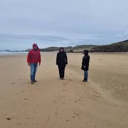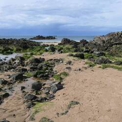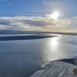 Von Bayeux ging es dann nach Westen. Zunächst zum Spazieren und Muschelsuchen an einen endlosen, fast leeren Strand. Dann über eine mehr oder weniger "Offroad" Stecke an der Küste nach Süden bisEn savoir plus