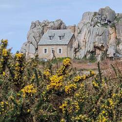 Dieses Haus an der Küste in der Nähe von Plougrescant klemmt so malerisch zwischen zwei Fesseln, dass wohl niemand daran vorbei gehen kann, ohne ein Foto zu machen. Und es ist offenbar bewohnt.