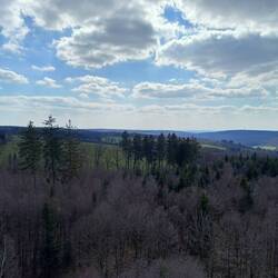 Das Wetter ist wie die zwei Tage vorher. Kalt, aber sonnig und herrliche Luft. In Stadtoldendorf gibt es ausgiebig Frühstück. Aus dem Ort hinaus geht es zunächst bergauf über eine Wiese. Schon wieder Ausblick zum Genießen. Dann kommt Wald und ein Sperrschild des Forstes. Wegen Urwalderzeugung gesperrt. Mmmh. Da geht ein Singletrail berghoch. Ich sehe zwei umgefallene Buchen, die schon länger da liegen. Die Alternative wäre langweiliger Forstweg für einige Kilometer. Ne, das ist keine Alternative. Es ist windstill. Die Gefahr, dass mir was auf den Nischel fällt ist bestimmt geringer als beim Überqueren einer Straße umgefahren zu werden. Ich ignoriere das Schild. Gut so. Das etwas unübersichtliche Terrain ist nach 200 Metern Aufstieg vorbei. Und dann kommt der alte Telegraf und eine Sonnenbank mit Aussicht. Und dann noch einige Kilometer feiner Single Trail durch den Buchenwald.