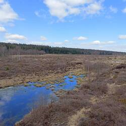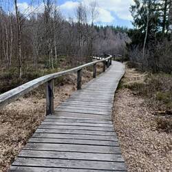 Dann kommt ein schöner Weg durch das Hellental. Hier fließen viele kleine Bächlein zusammen. Das Hochmoor wird renaturiert. Erfolge sind zu sehen. Das scheint ein beliebtes Ausflugsziel zu sein. Es sind einige Leute unterwegs.