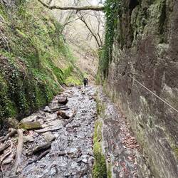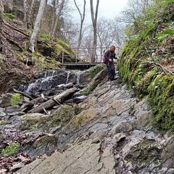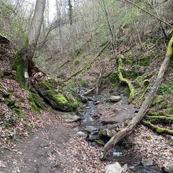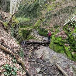 An der Uhuleyhütte machen wir Mittag mit Ausblick. Ganz alleine sind wir heute nicht unterwegs. Viele Tageswanderer und einige Rheinsteigwanderer. Noch mehr Leute sind dann in der Ruppertsklamm. Der Höhepunkt des Tages. Der Weg ist ordentlich matschig, aber das stört unsere sauberen und neuen Schuhe mehr als uns.