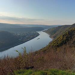 Wie gewohnt vom Rheinsteig sammelt man die Höhenmeter durch stetiges Auf und Ab. Erstmal geht es durch verschiedene Bachtäler. immer erstmal hoch. Dann Überquerung des Bachs mit meist recht matschigem Wegverlauf. Und dann auf der andern Seite wieder runter. Mit tollen Aussichten auf den Rhein. Besonders erwähnenswert natürlich das Königreich Schattenbank bald hinter der Marksburg.