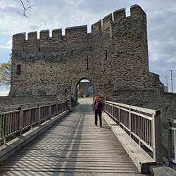 In der schönen Burgruine Stettenberg bekommen wir dann endlich gegen fünf nachmittags etwas zu Trinken. Wir telefonieren lieber mit Hotel und Restaurant in Kestert, um unser spätes Check-in und ein Abendessen zu sichern. Wir müssen vor acht da sein. Dann macht die Küche dicht.