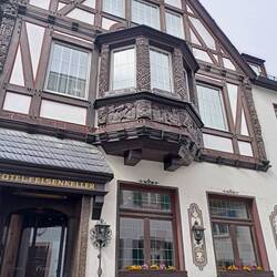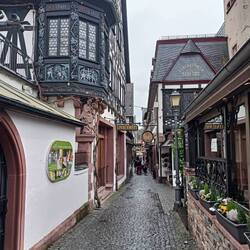 Also auf zum Sightseeing. Wir sind etwas entsetzt, dass Rüdesheim eine solche Hochburg für asiatische Touristen ist. Nicht dass jetzt welche da wären. Aber in fast allen Restaurants, nicht nur in der berühmt-berüchtigten Drosselgasse ist das erste Gericht Schnitzel und das zweite auch. Meist mit chinesischen Untertiteln. Bei Käthe Wohlfahrt gibt's Weihnachtszeug. Meine Wanderpartnerin macht sich den Spaß und fragt ob das Zeugs original erzgebirgisch ist. Na klar, meint die Verkäuferin. Gemeinsam suchen sie nach dem entsprechenden Herkunftssticker und finden keinen. Wer hätte das gedacht. Als gebürtige Sächsin ist sie da allergisch. Aber die Imitate werden tatsächlich immer besser.