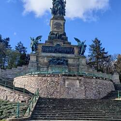 Monumental kommt dann Germania als Niederwalddenkmal daher. Schließlich geht es durch Weinberge bergab nach Rüdesheim. Damit ist der NST-Abschnitt des Rheinsteigs gelaufen. Ich kann später direkt vom Bahnhof Bingen zum Trailhead des Soonwaldsteigs gehen.