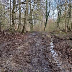 Die Wege in den schicken Weinort Kiedrich sind sehr matschig. Von Kiedrich gehen wir noch hinunter zum Rhein nach Eltville, wo ein Bett und ein Abendessen auf uns warten.