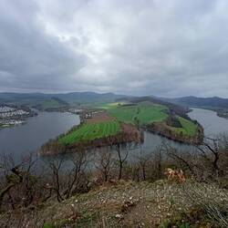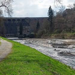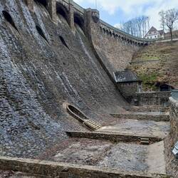 Es gibt noch eine zweite Kaffeepause im schönen Adorf. Dort lerne ich einen Rentner kennen, der sich nach unserem Gespräch fragt, warum er nicht auch sowas gemacht hat wie ich. Nettes Gespräch. Aber ich muss weiter auf dem Diemelsteig zum Diemelsee. Es hört auf zu regnen. Sogar die Sonne scheint kurz. Und der Weg zum See ist schön. Wieder Blicke von hoch oben. Dann die Staumauer. Und die ungeplanten 16 Kilometer über dir Waldroute. Die sind zu mehr als der Hälfte eine Waldfriedhofsroute, oder besser eine Borki-Harvester-Totalschadenroute. Ich erspare euch die Fotos bis auf eines. Das deprimiert, obwohl ich es aus Thüringer Wald und Harz noch schlimmer kenne.