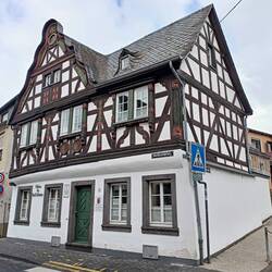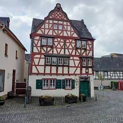 Um den Urlaub auch richtig auszunutzen stehe ich um halb fünf auf, laufe die drei Kilometer von der Hütte bis zum Marktplatz Hachenburg und erwische den Bus nach Koblenz um 5:50 Uhr. Hachenburg sieht gut aus. Ich plane für übermorgen schon mal ein bisschen Zeit ein. Um halb acht bin ich in Koblenz und frühstücke erstmal ausführlich. Die Etappe von Sayn nach Koblenz auf dem Rheinsteig kenne ich ja. Deshalb ist es ganz schön, diesmal in die andere Richtung zu gehen.