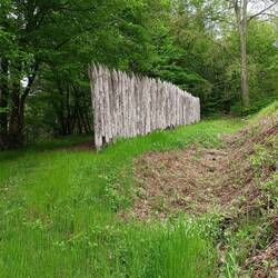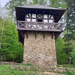 Bis Vallendar ist der Weg nicht so spannend. Aber dann geht es Rheinsteigtypisch steil auf und ab durch Wald und Wiesen. Die Natur hier ist ein Stück weiter als im Westerwald. Das milde Klima und die geringere Höhe machen gerade zu dieser Jahreszeit einen großen Unterschied. Apfelbäume blühen, Rapsfelder sind knallgelb, die Buchen haben ihr volles, aber noch hellgrünes Blätterkleid, ein Bauer hat schon das erste Mal gemäht. Sehr schön alles, trotz des semioptimalen Wetters. Der vorletzte Abstieg des Tages geht ins Tal des Brexbachs an einem rekonstruierten Römerturm vorbei. Im Brextal ist es richtig schön. Das Pfadfinderlager ist leer. Ich nehme an dass das am Wochenende auch anders war.