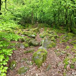 Es geht weiter durch den Buchenmischwald des Nationalparks Hunsrück. Sehr urig. Ich komme an der Quelle vorbei wo Hagen seinen Nibelungenkumpel um die Ecke gebracht hat. Sagt man.