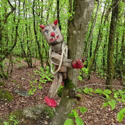 Über Langewiese geht es dann nach Hohenleye. In der gleichnamigen Hütte gibt's ein ordentliches Thruhikermenü: Hefeweizen mit Apfelkuchen nebst Schlagsahne und Cappuccino. Ich brauche heute nicht mehr viel aus meinem Vorrat. Bis hierher war der Weg recht urban. Jetzt geht es wieder in den Wald. Von dem ist immer noch mehr übrig als ich gedacht hätte. Ich wähle die Kammvariante, weil mich die Skulpturen und die Hängebrücke reizen. Sind auch nett. An der Millionenbankhütte muss ich Mal wieder entscheiden. Hier könnte ich gut übernachten. Die nächste Hütte ist am Potsdamer Platz. Noch sieben Kilometer. Da wäre ich erst kurz vor neun. Aber solange ist es auch noch hell.