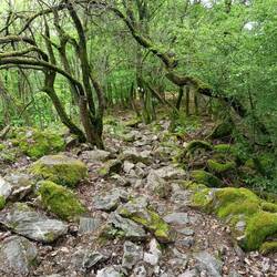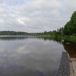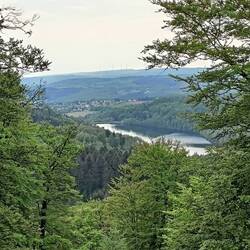 Der Rest des Urwaldsteigs ist noch besser als das Stück gestern. Wieder tolle Ausblicke auf die gut gefüllte Talsperre und meist Singletrail. Auch das Wetter spielt heute gut mit. Die Sonne scheint fast den ganzen Tag. Sehr warm wird es allerdings nicht.