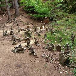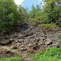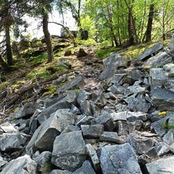 Der Rest des Wandertages ist geprägt von einigen schönen Bachtälern, viel Wald, Höhenmeter, aber keine großartigen Ausblicke mehr. Dafür interessante Steinformationen. Ich genieße die Ruhe im Wald und das Rauschen der Bäche.