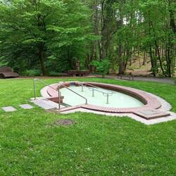 Nach dem Sonnenaufgang laufe ich zunächst nach und durch Küstelburg und dann zur Ruhrquelle, die fein plätschert. Das Hüttendorf ist wirklich nett gemacht.