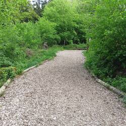 Durch Wald geht es an einem riesigen Waldspielplatz vorbei zum Dreifelder Weiher. Auf dem Weg kommt mir Rolf entgegen. Er wandert den E1 in Abschnitten von Nord nach Süd. Ich gehe den NST von Nord nach Süd. Er kommt mit entgegen. Einer geht also in die falsche Richtung. Oder auch nicht. Alle Wege führen wohl nach Süden. Er hat den gleichen Rucksack wie ich. Üla Ohm. In der gleichen Farbe. Grün. Er kennt den NST und die Videos von Soulboy. Und ist bei den Pinguinen als Rolf - HB. So viele Gemeinsamkeiten. Wir unterhalten uns eine Weile. Zusammen Laufen geht nicht. Weil trotz gleicher Richtung gehen wir in unterschiedliche Richtungen. Verrückt.