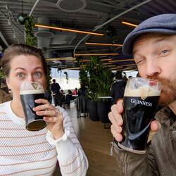 Da Reisen immer anstrengend ist für uns, haben wir uns entschieden den Nachmittag mit klassischem Touri-Programm zu verbringen: Shopping, Guiness-Storehousetour und Abendessen im Brazen Head, dem ältesen Pub Dublins (gegründet elfhundertirgendwas). Highlight war auf jeden Fall das Guiness, welches wir auf unserer Tour durchs Storehouse tranken: unser Foto auf dem Schaum! Wie geil ist das denn?
