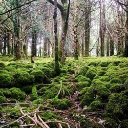 Nachdem uns Stefs Uhr aufgezeigt hat, wie hoch das Stress-Level nach der abenteuerlichen Autofahrt nach Killarney war, haben wir uns entschlossen, den ersten Tag hier im nahegelegenen Nationalpark zu verbringen. Dieser ist auf den ersten Blick mit sämtlichen Rentner-Reisegruppen aus Frankreich, Grossbritannien und Irland selbst überfüllt. Entfernt man sich jedoch vom Parkplatz, entspannt sich die Situation rasant. Eine kleine, zweistündige Wanderung durch den Wald half, den Puls wieder runter, ja sogar in den Zen-Modus zu bringen. Es ist wunderschön hier. Grün. Mit viel Moos. Und grün.