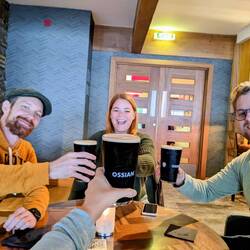 So viel Stuff wie gestern haben wir schon lange nicht mehr in einen Ferientag reingebracht. Es war grossartig. Aber schön der Reihe nach: Am Loch Lomond trafen wir auf Jess und Martin, mit denen wir nun einige Tage gemeinsam Schottland entdecken und bereisen werden. Beide fanden wir Unterkünfte im kleinen Örtchen Luss, einem kitschigen Kaff mit einem grösseren Hotel, einem Bistro und einem Café. Offenbar Kulisse für verschiedenste Filme, u.a. den nächsten Indiana Jones Movie (wussten gar nicht, dass noch einer ansteht). Jedenfalls ging’s früh raus zum See, wo wir eine Rundfahrt mit dem Boot buchten - mit Zwischenstopp auf einer Insel, auf der wir für eineinhalb Stunden Kirchenruinen, Gräber und den Gipfel auskundschaften konnten. Martin liess seine Drohen steigen um erste spektakuläre Filme zu machen (https://youtu.be/yWtKYily8T4 ). Morgen sollte es noch spektakulärer werden, aber später mehr dazu. Die Fahrt auf dem Loch war jedenfalls superinteressant. Der Kapitän lieferte während der Fahrt Infos und Unterhaltung („Wir haben kein Monster wie Loch Ness aber meine Schwiegermutter“).