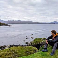 So, fertig abgeschweift. Zurück zum letzten Skye Tag. Es gibt nicht viel zu erzählen. Die Insel besticht durch ihre Schönheit, vor allem an den Küsten. Doch auch das Landesinnere hat was, rauh und wild. MJ und Stef machten einen „Spaziergang“, wobei man auf dem sumpfigen und unebenen Highland Terrain kaum vorwärts kommt. In 2h schafften sie knapp 3 Kilometer. Dafür trafen sie Schafe, was immer ein Highlight ist.