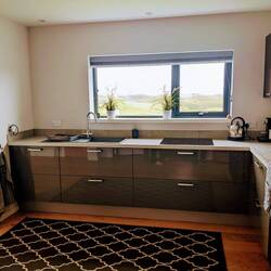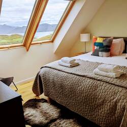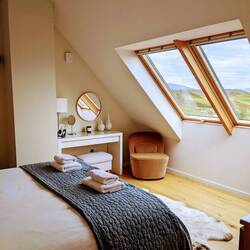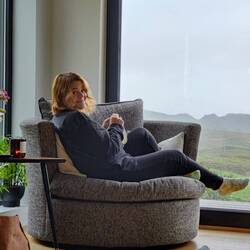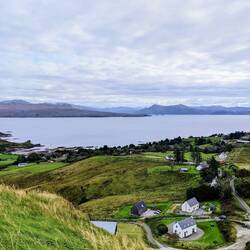 Jedenfalls machten wir uns mit unserem kleinen Mietauto auf den Weg nach Isle of Skye. Wir platzen fast vor Vorfreude, war die Insel doch eines unserer Highlights bei der letzten Schottland-Reise vor 15 Jahren. Zuerst noch Zwischenstopp beim Highlander-Schloss Eilean Donan inklusive Haggis-Sandwich. Dann ging’s über die hohe Brücke nach Skye und wir waren da! Also fast. Bis zu unserem Air BnB ging’s noch ein Stück Richtung Süden, enge Strassen hoch, bis wir schliesslich im Skye Lair ankamen. Alle vier waren wir überwältigt vom kleinen, modernen Haus, welches die nächsten drei Tage unsere Bleibe sein würde. Auf dem Tisch stand eine Flasche Wein, ein Strauss Rosen, Schokolade und eine handgeschriebene Karte. Die Aussicht: Endlose, grüne Wiesen mit Schafen und Blick aufs Meer. Besser geht wohl nicht.