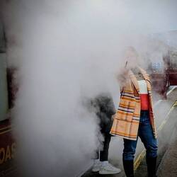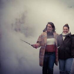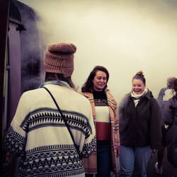Schon als wir auf den Bahnhofsparkplatz fuhren, wurde klar: das wars Wert! Der alte, feuerrote Zug allein wäre schon ein Fotosujet wert. Doch dieses Bild wurde dadurch getoppt, dass überall weisser Dampf aufstieg. Einfach magisch! So magisch, dass auch Ravenclaw-Martin das Kribbeln unter den Fingernägeln bekam. Kurzerhand wurde Google befragt, wann der Zug abfährt und wohin - das könnte doch noch den einen oder anderen coolen Drohnen-Shot geben, nicht? Währenddessen packte Gryffindor-MJ & -Stef sowie Hufflepuff-Jess wieder das Fotoshooting-Fieber, was in einigen höchst dramatisch-verdampften Bildern resultierte. Doch oh weh, es wurde damit zu viel Zeit vertrödelt - der Zug würde in einer Viertelstunde abfahren! Zum Glück hat Ravenclaw-Martin das Zeitmanagement im Griff und er kann die in ihrer Phantasiewelt verlorenen Gryffindors und Hufflepuff zum aufbrechen bewegen. Schnell fuhren wir etwa zehn Minuten an den Stadtrand, wo Ravenclaw-Martin zusammen mit Google den perfekten Platz, einen Bahnübergang, gefunden hatte um dem vorbeifahrenden Zug mit erhobenen Zauberstäben Tribut zu zollen. Und: Ravenclaw-Martins Rot nahm diesmal bei ihm die Überhand, so dass er mit seiner Drohne höchst riskant durch den weissen Dampf des vorbeifahrenden Zuges flog. Wars das wert? Seht selbst: https://youtu.be/sC3b3Q6Nw5g