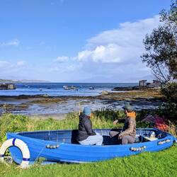 Gleich nach der Ankunft liefen MJ und Stef auf den Hügel hinter dem Haus, um noch eine bessere Übersicht zu erhalten und um unsere 10’000 Schritt zu erreichen. :) Danach kurz runter ans Meer zu den Ruinen einer alten Burg, die eine perfekte Kulisse für CD-Covers jeder Celtic-Rock-Band abgeben würden. Auf dem Rückweg trafen wir auf den Knuddeln-Hund Beni und seinen Besitzer, einen 65-jährigen Jus-Professor, der hier remote arbeitet - genau wie seine Frau. Ein interessantes Modell, das uns gleich zum phantasieren brachte. Wer weiss: Vielleicht mal eines Tages…もっと詳しく