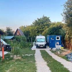 Dank Christiane haben wir an einem Imbiss nach einem Stellplatz gefragt! Nun stehen wir auf deren Hof!Læs mere
