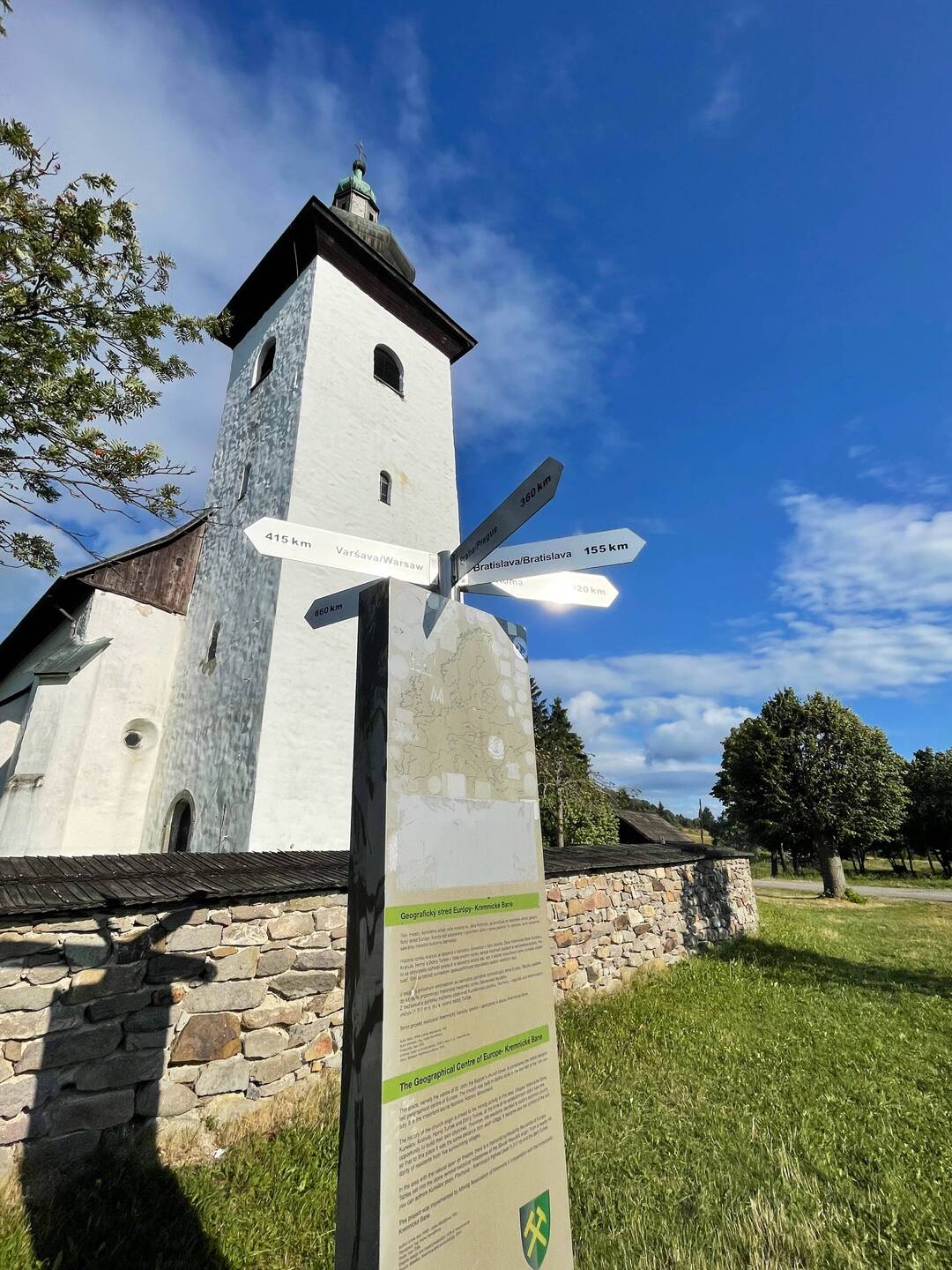 Der Mittelpunkt Europas in Kemnicé Brane! Hoch gelegen, neben einer schönen Kirche mit verfallenen Gräbern und deutschsprachigen Grabsteinen!