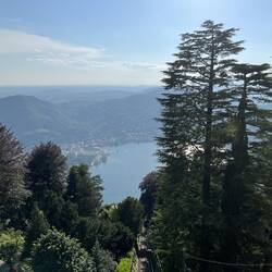 Um 12 sind wir fertig und machen uns los nach Como… besser gesagt nach Brunate um von dort aus mit der Standseilbahn nach Como runterzufahren. Damit wollen wir den engen und vollen Gässchen in Como entgehen und über den ruhigen Berg anfahren….. guuuuuuuuuuuter Plan, es ist tatsächlich kaum was los. Bis auf 2 andere Autos sind nur wir auf der Strecke unterwegs. Eigentlich hätten wir spätestens da skeptisch werden müssen.. aber nein, wir fahren gut gelaunt durch die kühlen Wälder und lassen uns die frische Luft um die Nase wehen…. Bis wir durch drei Dörfer müssen um unser Ziel zu erreichen 🙈.