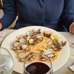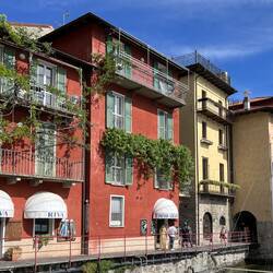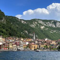 Wir starten mit einem Snack und einem Aperol und beobachten das bunte Treiben und nehmen uns vor die Hop on Hop off Tour quasi auf dem Wasser zu machen und fahren von Bellagio nach Varenna. Ein goldiges Dorf mit bunten Häuser … und massig Touristen. Wir setzen uns erstmal in den Schatten und genießen Aperol Nummer 2 dann bummeln wir auch hier durch die Gassen und fahren dann weiter nach Menaggio wo wir an der Palmen gesäumten Promenade ein Eis verspeisen… dann gehts auch schon wieder zurück nach Bellagio. Dort wollten wir eigentlich in der Abendsonne noch Gemütlich was essen, bekommen aber keinen Tisch… Gott sei Dank, denn auf dem Heimweg finden wir ein super Pizzaria, bei der Karsten eine Calzone und ich mein Spaghetti bekomme… zwar nicht mit Tomatensauce dafür mit Muscheln 😀 .