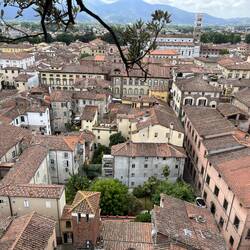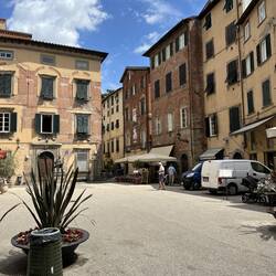 Lucca ist toll! Alles ist total nah beieinander und wir umkreisen nach dem Frühstück auf der Dachterrasse erstmal die Altstadt auf der 4km langen Mauer und begeben uns dann wieder in Menge. Weil wir ja nicht wandern, steigen wir auf den Torre Guinigi, der mit Bäumen bewachsen ist und befinden uns nun über den Dächern von Lucca, die der Stadt mit ihren Farben eine ganz besondere Stimmung verleihen. Auf den Häusern befinden sich liebevoll gestaltete Dachterassen 🥰 und in Innenhöfen grüne Oasen. Da wundert es mich nicht, dass Iris unsere Gastgeberin beim Frühstück erzählt hat, dass sie ihr Hostel nur hier betreiben würde, weil sie die Stadt so liebt… ich kann sie verstehen.