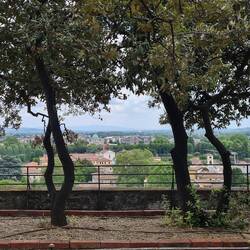 Wir hoppen noch mal für zwei Stationen on um dann den Rest zu Fuß zu erkunden. Das war heut viel Stoff. Konnte mir nicht alles merken. Erzählungen von der Familie Medici, die der Stadt Florenz ihre ganze Kunstsammlung vermacht hat bis hin zu den Erklärungen zum Kunst- und Modehandwerk. Zuviele Attraktionen aneinander… langsam wird’s auch ziemlich warm… da kommt der Spaziergang unter den kühlen Bäumen ganz recht.. wir. Schlendern vorbei an Coras Villa die sie von ihrem Mann Gustav Oppenheim zur Hochzeit bekommen hat. Es gab im Vorfeld wohl ein Eifersuchtsdrama und das war der Versuch zur Besänftigung… 😂. Auch gut.