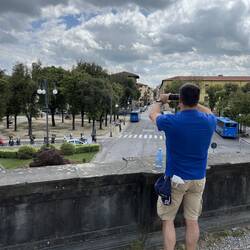 Heute wollen wir Florenz besichtigen und starten dann zu Fuß Richtung Innenstadt. In einem Kaffee um die Ecke holen wir uns noch einen Kaffee bevor es dann zur Hop on, Hop off Tour geht. Ein gutes Mittel um sich erstmal einen groben Überblick zu verschaffen 😀. Nach 1,5 Runden on, hoppen wir das erste mal off. Am Aussichtspunkt Piazzale Michelangelo um die Stadt von oben zu sehen. Auf der Rundfahrt sagen sie die Aussicht sei so schön, dass man meint Florenz bewirbt sich damit für immer als Hintergrundbild im Gedächtnis eingebrannt zu bleiben. Tatsächlich ist die Stadtkulisse von Florenz mit ihren weichen und warmen Farben, dem Arno, dem Dom wirklich fesselnd.