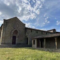 Die Aussicht ist toll und die von der aufregenden Fahrt durchgeschwitzten Klamotten schnell wieder getrocknet! Wie schön in grün eingebettet Florenz liegt… 🥰🥰🥰 ein kurzer Rundgang noch durch das Franziskaner Kloster San Francesco (Weltkulturerbe) und wie der Kleber an der Tür zeigt auch eine Empfehlung von Tripadvisor 🫢.